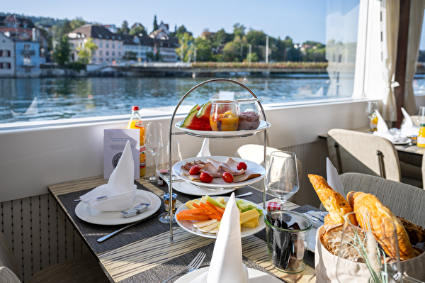 Genussprogramm an Bord. Entspannt an den Brunch-Köstlichkeiten erfreuen. Die variantenreiche Auswahl präsentieren wir Ihnen auf Etageren an ihrem Tisch. Zum Abschluss: Die Dessertvariation! Erleben Sie eine abwechslungsreiche Fahrt - und lassen Sie sich verwöhnen.